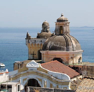 La Chiesa del Soccorso, situata su un promontorio a Forio, è uno dei luoghi più suggestivi dell’isola d’Ischia. Dedicata a Santa Maria del Soccorso, risale al XIV secolo ed è caratterizzata dalla sua facciata bianca in stile mediterraneo, semplice ma molto elegante.